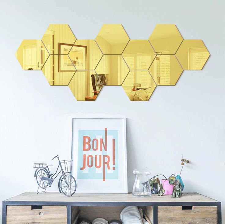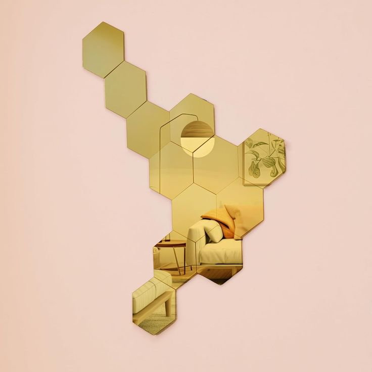 Add a modern decorative touch to your space with our acrylic hexagonal mirror set — stylish, lightweight, and easy to install.