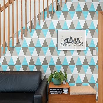 Self Adhesive Wallpaper – Blue Triangle – 0.45 by 10 Meters