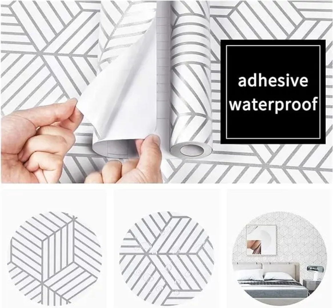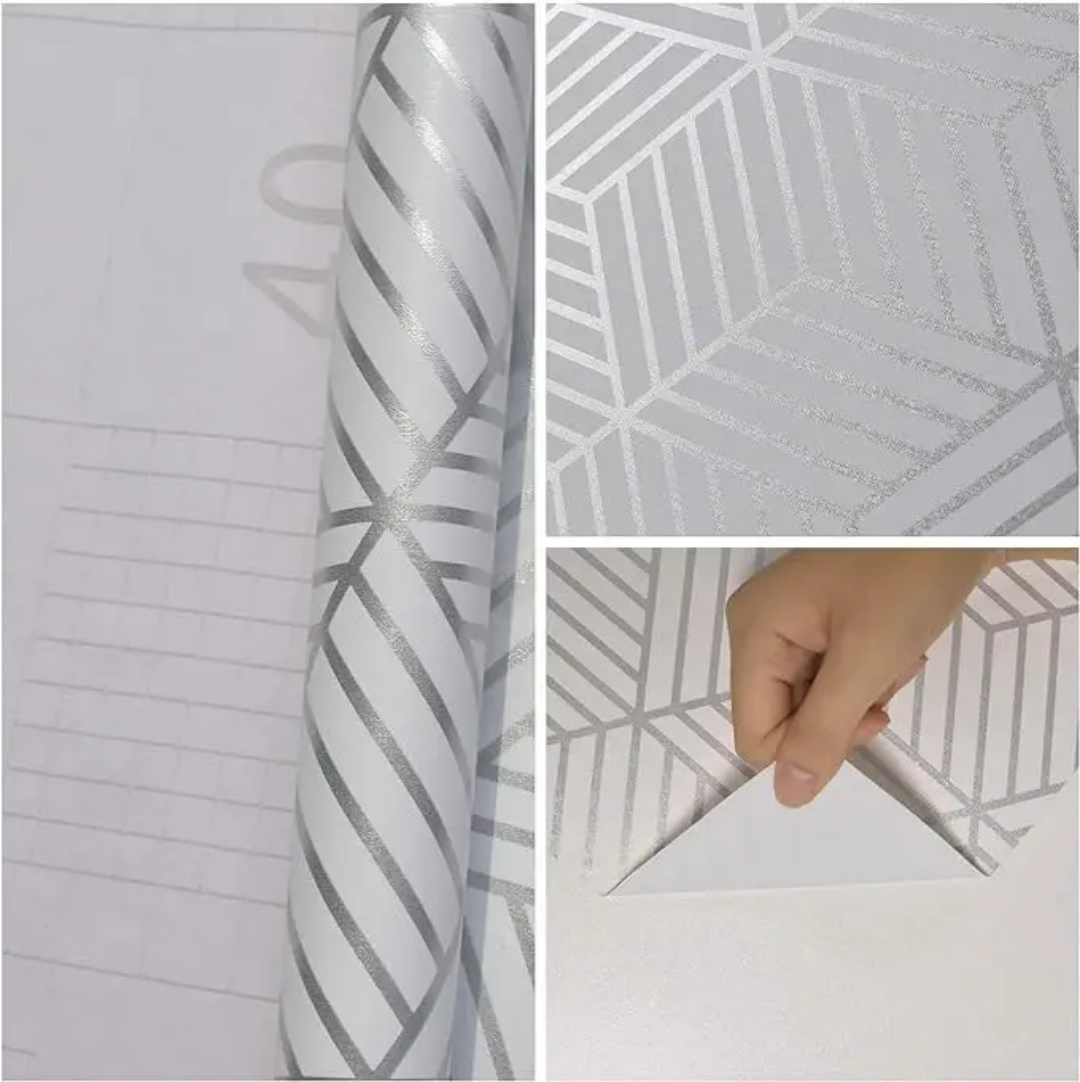 Self Adhesive Wallpaper – White and Silver – 0.45 by 10 Meters